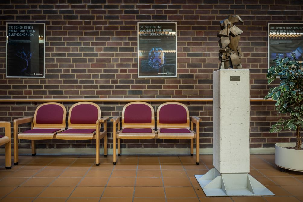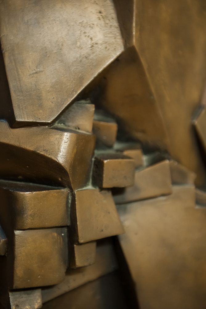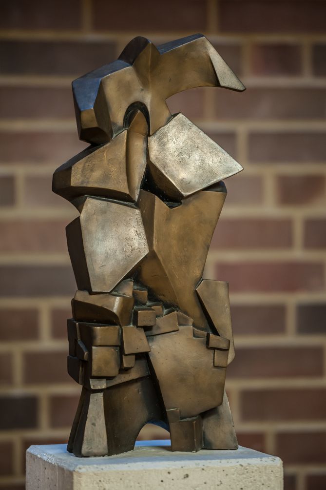 Schumann, für den das Wesen und die Qualität der Kunst in der individuellen Formfindung liegt, folgt auch in dieser Bronze seinem unverwechselbaren Gestaltungsprinzip. Geometrische Formen, teils gewagt aneinandergefügt, sind zu einem Turm aufgestapelt. Auf der Turmspitze befinden sich zwei stilisierte Vogelfiguren mit ihren ausgebreiteten Schwingen, die im Begriff sind, das instabile Gebilde zu verlassen. Schumann schuf eine sehr spannungsreiche Skulptur, in der er sich zudem einem seiner großen Themen widmet, der Tierdarstellung.