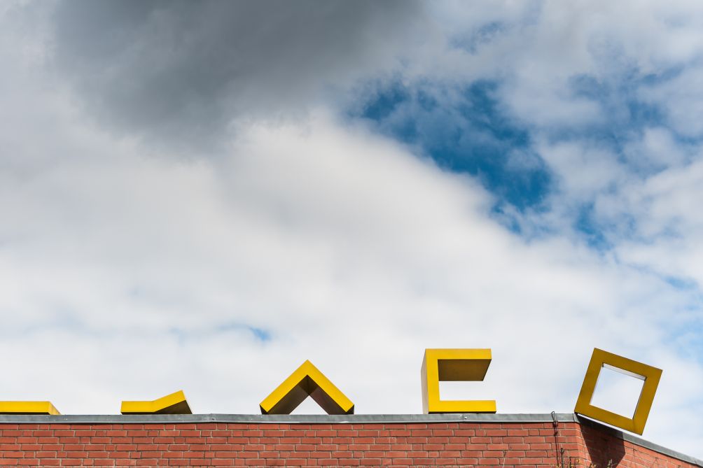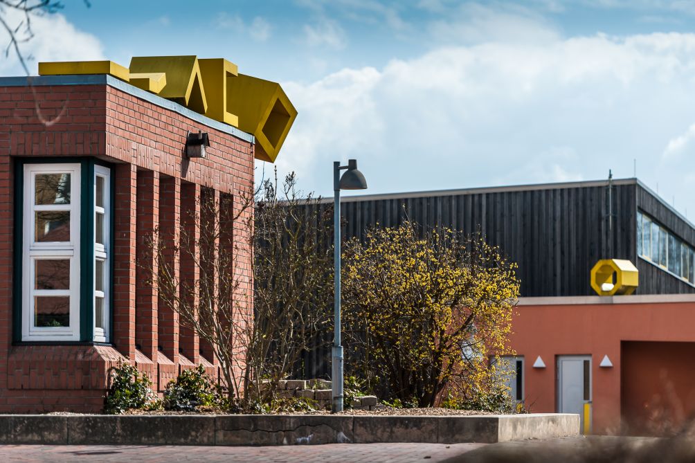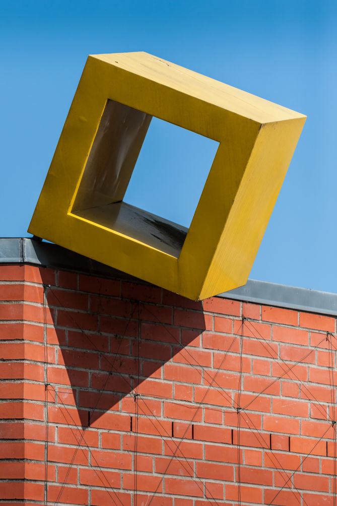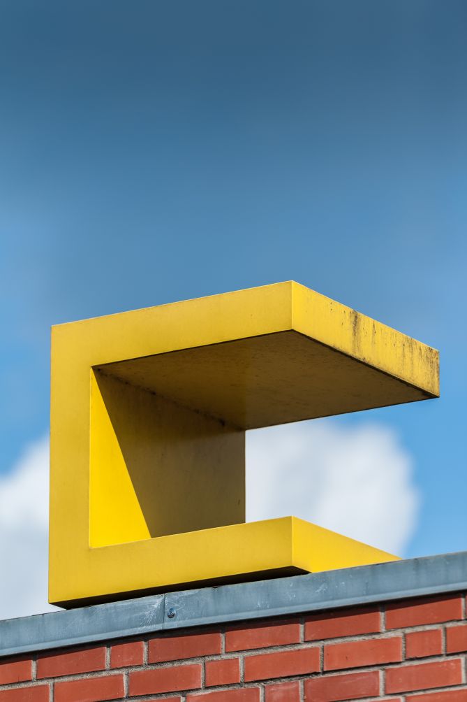 2005 wurde das Gebäude der heutigen Gotthard-Kühl-Schule um den Neubau einer Turnhalle erweitert. Regine Bonke erhielt den Auftrag der künstlerischen Gestaltung mit der Maßgabe, die Eingangssituation der Schule signalhaft hervorzuheben und gleichzeitig den bestehenden und den neuen Bau optisch miteinander zu verbinden. Mit den klaren geometrischen Aluminiumobjekten, die sie auf den Gebäudedächern platzierte, blieb Bonke einerseits ihrer reduzierten konkreten Formensprache treu, zum anderen schuf sie damit eine Installation, die mit einem humorvollen Augenzwinkern – und gemäß dem Titel es wird – eine außergewöhnliche optische Dynamik entwickelt. Betrachtet man die fünf leuchtend gelben Objekte auf dem Dach des Bestandsbaus von links nach rechts, so scheinen sie, gleich den Einzelbildern eines Trickfilms, in Bewegung geraten: Eine schlichte horizontale Aluminiumplatte „erhebt“ sich zu einem rechten Winkel, der sich wiederum um eine weitere Seitenfläche erweitert und sich letztendlich zu einer Würfelform komplettiert. Dieser Würfel scheint von der Ecke des Gebäudedaches zu fallen und leitet so mit größtmöglicher Dynamik die Aufmerksamkeit des Betrachters über zu dem neuerrichteten Gebäude. Den Endpunkt dieser Metamorphose bildet eine Sechseck-Form, die prominent auf dem Dach des Neubaus thront, wodurch die Verbindung der Gebäudeteile zu einem optisch in sich geschlossenen Ensemble verwirklicht wird.