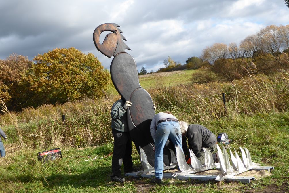 Die Initiative für Lübecks ländlichen Raum e.V. und die Hansestadt Lübeck mit dem Projekt Regiobranding haben es sich zum Ziel gesetzt, an diesen historischen Wirtschaftsraum zu erinnern. Aus diesem Grund sollen plastische Arbeiten mit entsprechendem thematischem Bezug von verschiedenen Künstlern entlang des ehemaligen Kanalverlaufs aufgestellt werden. Die Figurengruppe, die Wiedemann konzipierte, besteht aus drei abstrahierten menschlichen Silhouetten, in deren Köpfen jeweils ein stilisierter Hering als Negativform eingeschnitten ist. Die großen Holzfiguren sind in metallene Geschirre eingespannt, von denen Seile nach hinten ins Leere laufen. Die nach vorne geneigte Haltung der Figuren deutet die schwere Last an, die die Treidler bewegen mussten, um das wertvolle Salz zum Konservieren des Herings an seinen Bestimmungsort zu bringen.