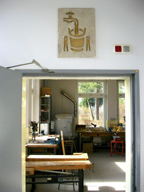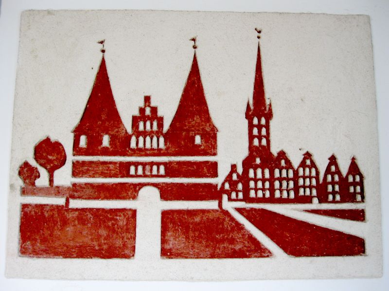 1955 schuf Karl Gieth für die neu errichtete Schule an der Haferkoppel 32 Wandembleme. Eine Gruppe dieser Embleme gibt bildnerisch Auskunft über die verschiedenen Funktionen der Räume im Schulgebäude, eine zweite Gruppe stellt die bekannten Bauwerke des Lübecker Stadtbildes dar.
