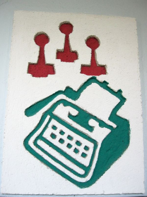 Für diese kleinen Wandarbeiten bediente sich der Künstler der sogenannten Sgraffito-Technik, die auch als Ritz- oder Kratzputz bezeichnet wird. Hierbei werden auf einem Untergrund aus Kalkputz mehrere Schichten farbiger Anstriche und Mörtel auf die Wand aufgetragen. Mit einem Kratzeisen werden im nächsten Arbeitsschritt Muster oder Motive in die Oberfläche geritzt, so dass die darunterliegenden farbigen Schichten teilweise freigelegt und damit sichtbar werden. Es ergeben sich ein- oder mehrfarbige Darstellungen, eingetieft in die verputze Wandfläche, welche nach dem Durchtrocknen der Putzschichten ausgesprochen haltbar sind.