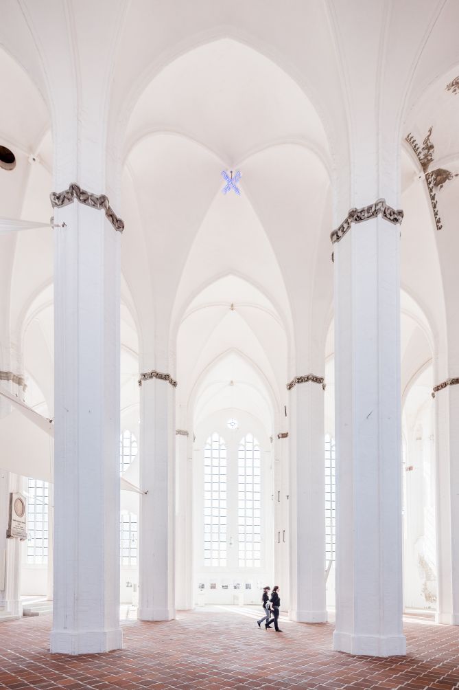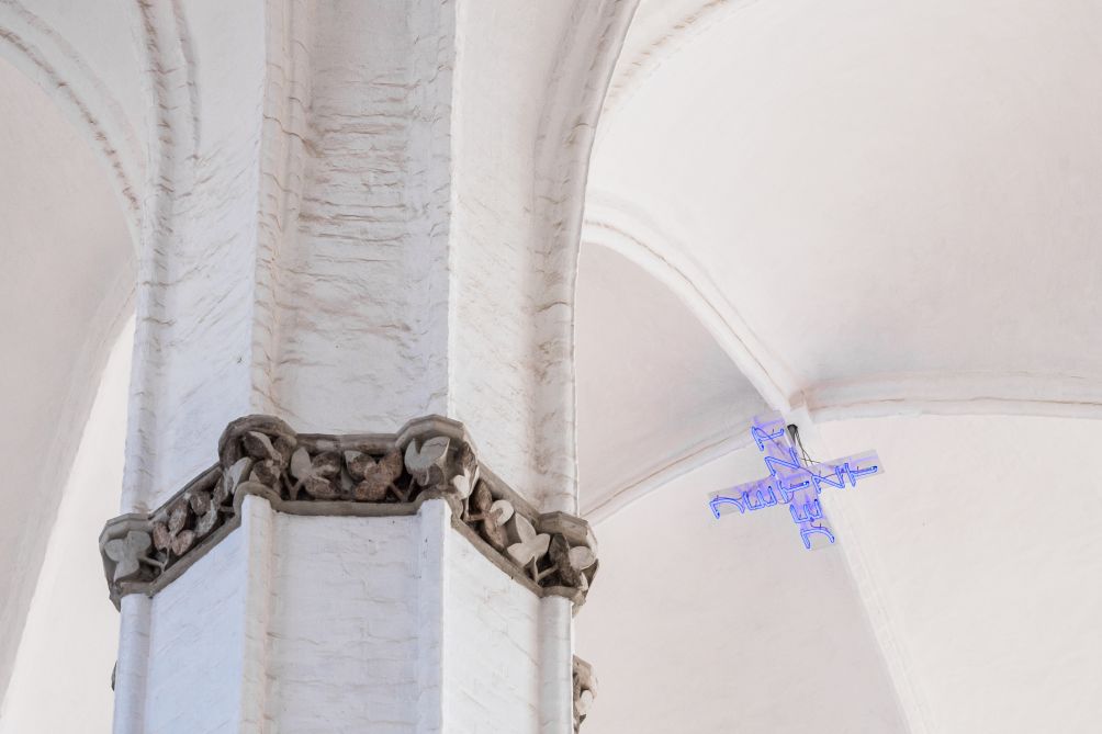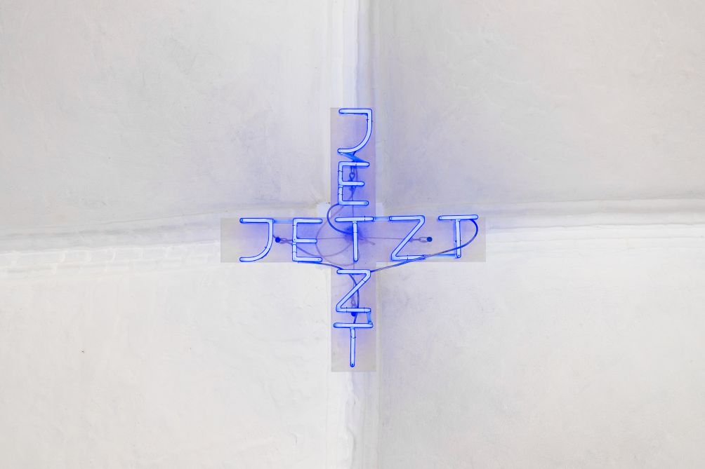 Hoch oben im lichten, weißen Kreuzrippengewölbe von St. Petri kann mit etwas Aufmerksamkeit die zarte, bläulich leuchtende Neoninstallation JETZT von Hanna Jäger entdeckt werden. Sie nimmt dort im Mittelschiff die Position eines Schlusssteines im Zentrum der sich kreuzenden Gewölberippen ein, doch anstelle einer massiven, stützenden Präsenz erscheint sie wie eine flüchtige Erscheinung in schwereloser Leichtigkeit. Die Installation, die anlässlich der Wanderausstellung „Hanna Jäger. Farb-Licht“ 2002 für St. Petri angefertigt wurde, besteht zweimal aus dem Wort „JETZT“, das in horizontaler und in vertikaler Ausrichtung im zentralen Buchstaben „T“ über Kreuz gesetzt wurde. Das Werk findet so Anklänge an das christliche Kreuz und setzt einen Akzent im Zentrum des Gewölbes. Das Wort „JETZT“ kann als Mahnung an den Betrachter interpretiert werden, sich die Vergänglichkeit und die Bedeutung des Augenblicks zu vergegenwärtigen. Seit Ende der 1980er Jahre arbeitete Hanna Jäger mit Neonlicht und führte damit ihre künstlerischen Anfänge als Malerin fort. Sie äußerte sich dazu folgendermaßen: „Mit Neon oder Schwarzlicht bewege ich mich in den Energiebereichen der Hochspannung. Sichtbar gemacht als Farbenergie besitzt sie eine neue Qualität. Sie kommt aus dem Bereich des High-Tech und signalisiert fast automatisch 'jetzt' oder 'heute', unabhängig davon, ob sie laut bis schrill oder zart und verhalten wird." (zit. nach: http://www.stadtgalerie-brunsbuettel.de/ausstellungen/archiv.php?jahr=2002).