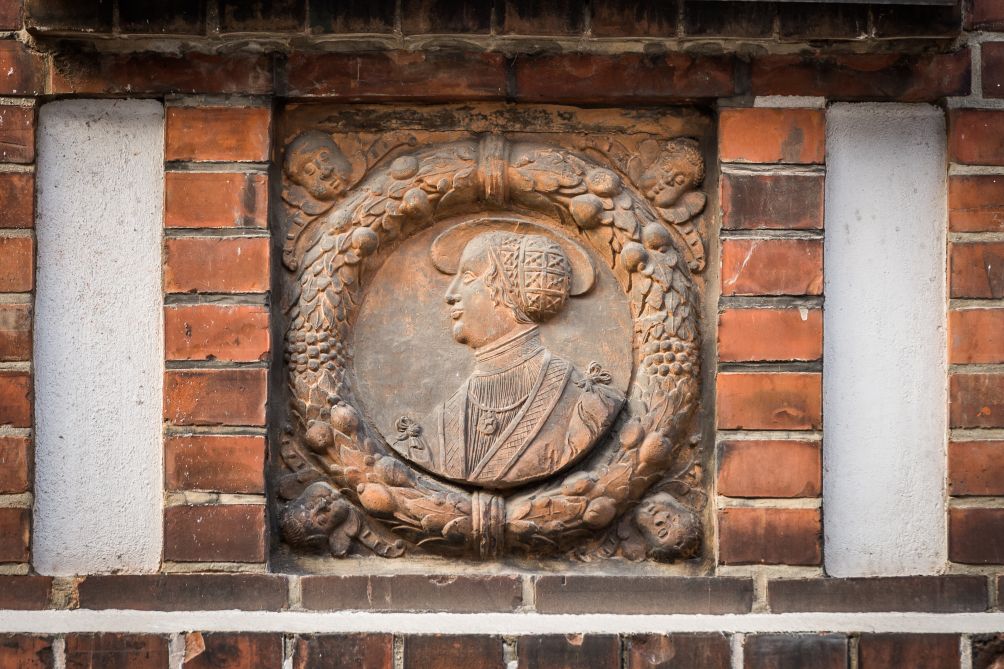 Statius von Düren, dessen Herkunft weitgehend unbekannt ist, ist zwischen 1551 und 1566 als Terrakottabildhauer in Lübeck nachweisbar. Er besaß eine Ziegelei auf der Pepermole vor dem Holstentor, die er mit finanzieller Unterstützung seines Geschäftspartners, dem Kaufmann Gerd Reuter, betrieb. In seiner Werkstatt entstanden in serieller Fertigung die Form- und Bildnissteinplatten, die der Ausschmückung von Ziegelfassaden vor allem von Lübecker Profanbauten dienten. Darüber hinaus schuf er auch die Baukeramik für die Bauten des mecklenburgischen Herzogs Johann Albrecht I. Die Renaissance-Plastik erlebte durch die Werkstatt des Statius von Düren eine Nachblüte. Seine Motive verbanden klassische antike Themen mit niederländischer und norddeutscher Formensprache zu einem Kunsthandwerk von hoher Qualität und großer Beliebtheit.