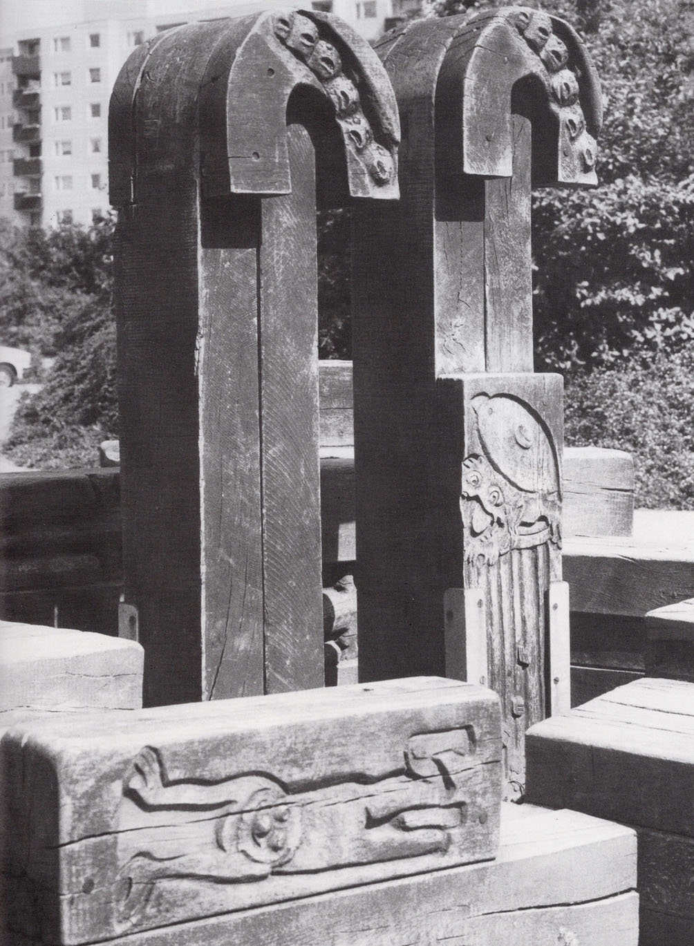 Vor der Grundschule am Koggenweg stand die Spiel- und Sitzplastik von Anatol Buchholtz. Die Holzkonstruktion wurde ein Jahr nach Eröffnung der Schule dort aufgestellt. Die stufenweise übereinander geschichteten Blöcke und die zwei mittig aufragenden Holzpfähle luden zum Sitzen oder Klettern ein. Das spielerische Element betonte der Künstler zudem durch zahlreiche Schnitzereien. Sie zeigten beliebte Figuren der Sesamstraße, wie z.B. Oskar aus der Mülltonne.