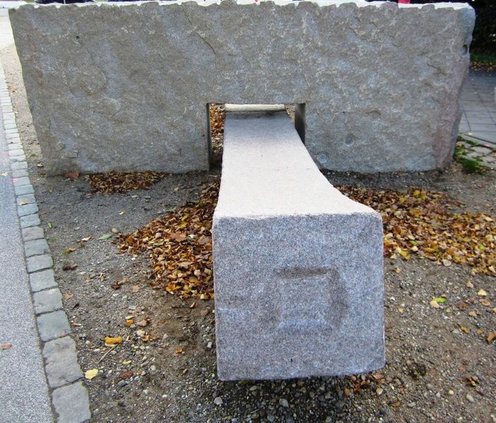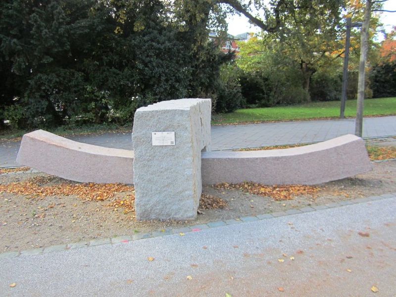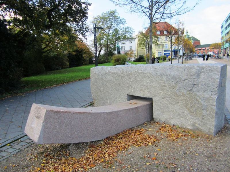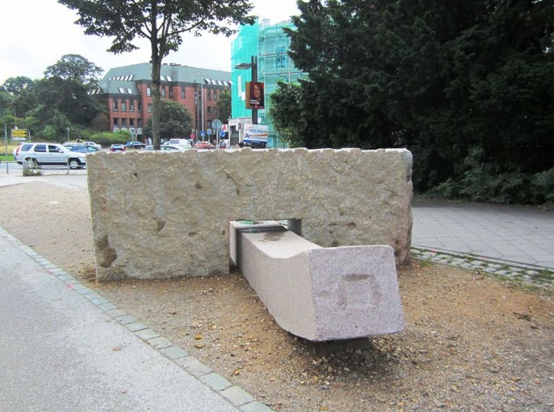 Ein heller, glatt geschliffener Langkörper wird von einem grob aus dunklem Granit geschlagenen rechteckigen Körper überspannt: Die neun Tonnen schwere Granit-Skulptur wurde als Symbol für den Zusammenschluss der Fehmarnbelt-Region von der IHK in Auftrag gegeben und im August 2013 aufgestellt. Nach Aussage des Künstlers Jörg Plickat versinnbildlicht die abstrakte Komposition eines Kreisbogens und eines kubischen Elements die Verbindung von Tunnel und Brücke. „Die Idee war zu symbolisieren, dass ein Tunnel auch eine Brücke sein kann“ erklärte Plickat den Lübecker Nachrichten am 29. August 2013. In Kopenhagen und Malmö stehen ebenfalls symbolisch aufgeladene Granitblöcke der Bildhauer Henrik Troelsen und Ian Newberry, die zusammen mit Plickats Werk 2012 im Rahmen eines Bildhauersymposiums während der Fehmarnbelt Days auf dem Koberg Lübeck gefertigt wurden.